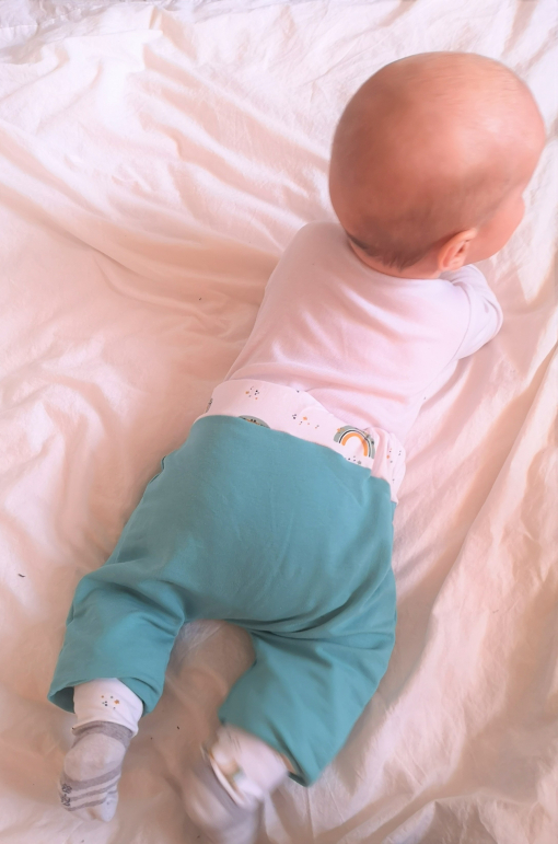 Otroške Baggy hlače iz bombažne prevešanke. Številka baggy-ja je realna glede na višino otroka. Torej npr. št. 56 je za višino otroka nad 56 cm.
