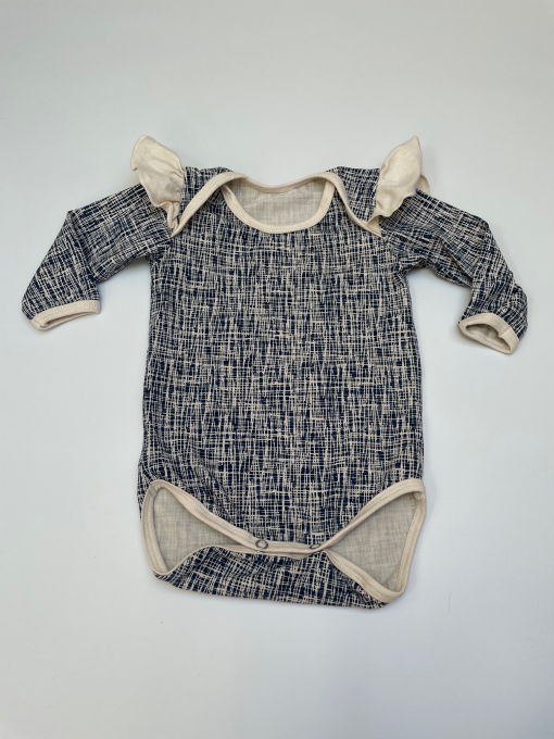 Otroški body iz bombažnega jerseya. Številka bodija je realna glede na višino otroka. Torej 68 je za višino otroka nad 68 cm.