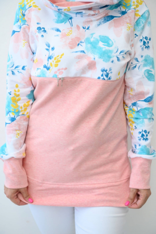 Fashionable sporty stylish breastfeeding sweatshirt made of cotton french terry. The sweater is further enhanced by the addition of special cross collar.