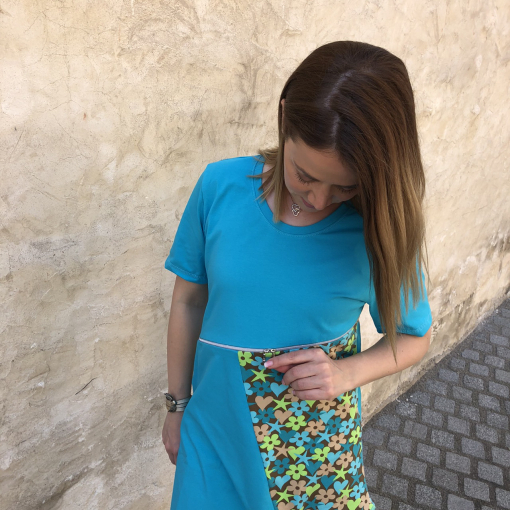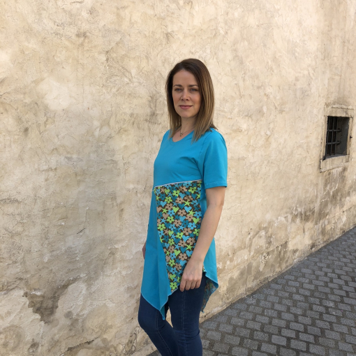 Modna elegantna majica za dojenje, narejena iz bombažnega jerseya.