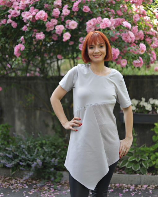 Modna elegantna majica za dojenje, narejena iz bombažnega jerseya.