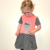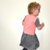 Dekliška oblekica z aplikacijo nabrano v pasu. Lahko se nosi čez pajkice, ali hlačne nogavice, lahko pa tudi samostojno kot poletna oblekica.