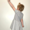 Dekliška oblekica z aplikacijo nabrano v pasu. Lahko se nosi čez pajkice, ali hlačne nogavice, lahko pa tudi samostojno kot poletna oblekica.