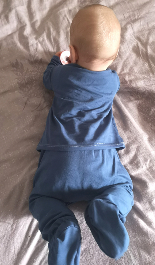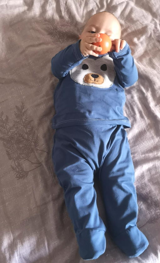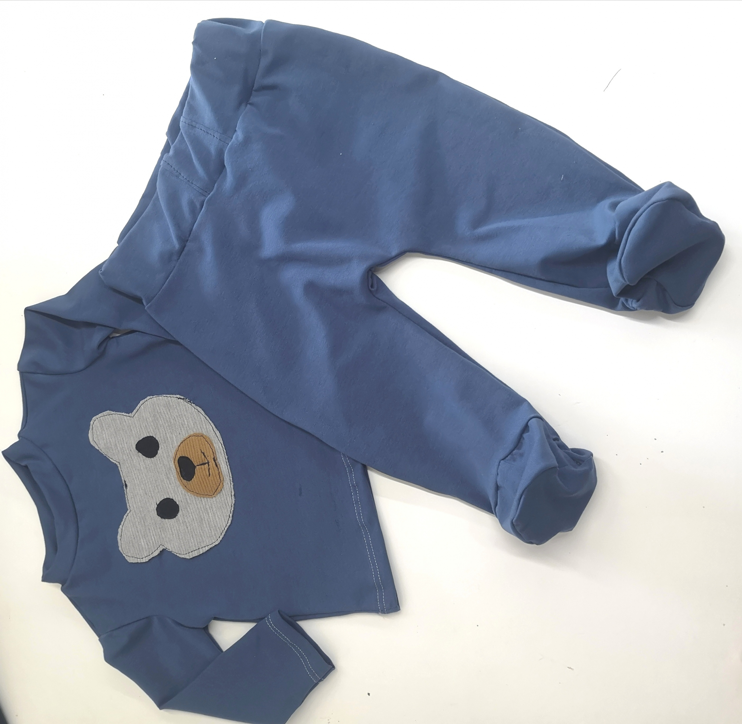 Otroški komplet iz bombažnega Jerseya. Številka kompleta je realna glede na višino otroka. Torej npr. št. 56 je za višino otroka nad 56 cm.