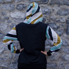 Modni pulover za nosečnost s kapuco, narejen iz bombažne prevešanke.