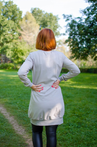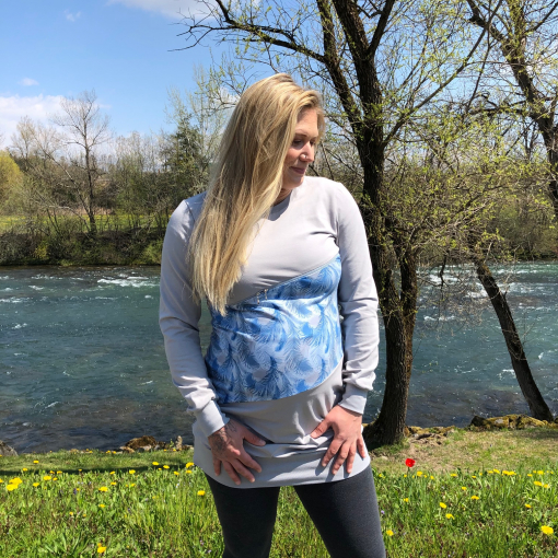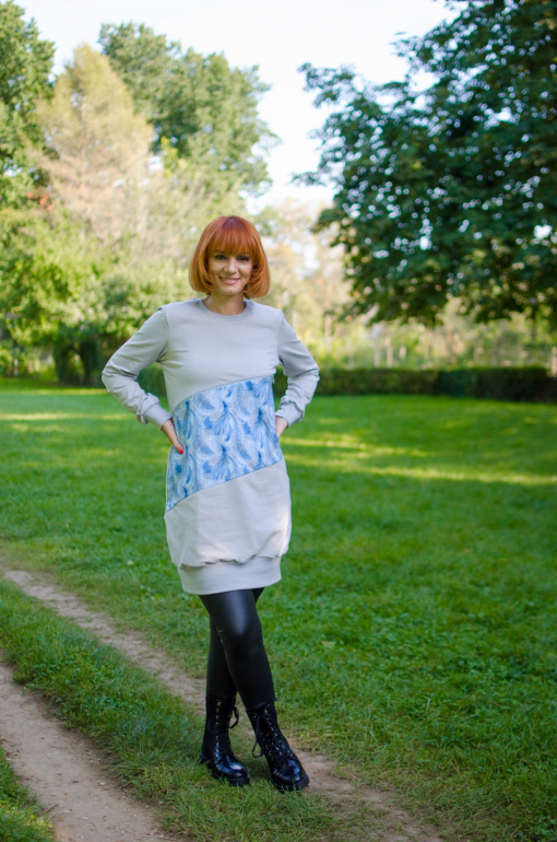 Modna elegantna obleka / tunika s patenti za nosečnost in kasneje dojenje, narejena iz bombažnega jerseya.